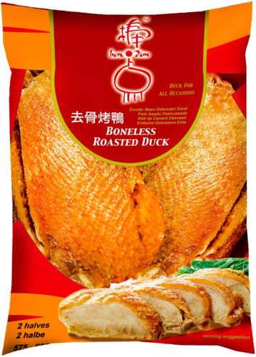ROASTED DUCK, ONE-HALF, 2X1/2 (16TH) WITH SKIN, BONELESS, FROZEN
